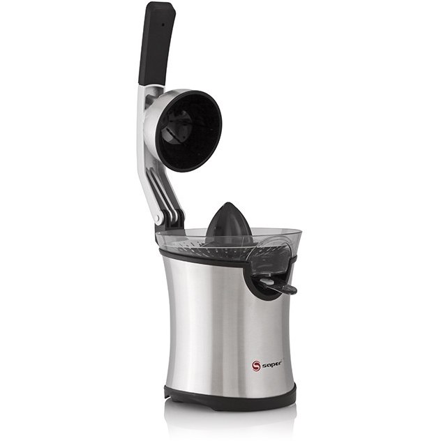 جنس بدنه آب مرکبات گیری ساپر SCJ-360 استیل برس خورده است و جای انگشت را روی خود نگه نمی دارد. از مزیت های این آب مرکبات گیر سیستم ضد چکه و قطع کن آبچکان آن است. نحوه عملکرد این محصول ساپر اهرمی فشاری می باشد. این آب مرکبات گیری دارای 2 کلاهک مخروطی بزرگ – کوچک همچنین درپوش ضد گرد و غبار است. آب مرکبات گیری ساپر SCJ-360 دارای قدرت ۱۶۰ واتی است و یکی از پر قدرترین انواع آب مرکبات گیر است. با دستگاه آب پرتقال گیر ساپر ۳۶۰ می توان علاوه بر آب پرتقال، لیمو شیرین و گریپ فروت انواع لیمو ترش را نیز آب گیری کرد. آب پرتقال گیری از زیر مجموعه انواع آب میوه گیری است. ساپر بیش از ۲۰ سال در ایران سابقه دارد و همواره بهترین گارانتی را به مشتریان خود می دهد. محصولات ساپر از کیفیت A برخوردار است. دستگیره اهرمی روی محصول نصب است، قدرت آب گیری را تا چند برابر افزایش می دهد. از همه بهتر اینکه باعث خستگی دست و انگشتان نمی شود